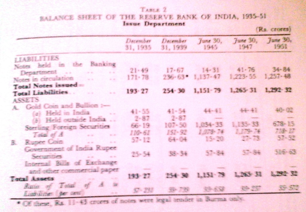 What is “A” in the Issue Department (in those old original @RBI balance sheets when the accounting had integrity)? “A” is Gold and Foreign Exchange Securities… That is the same as Au in the Brunner Meltzer table earlier