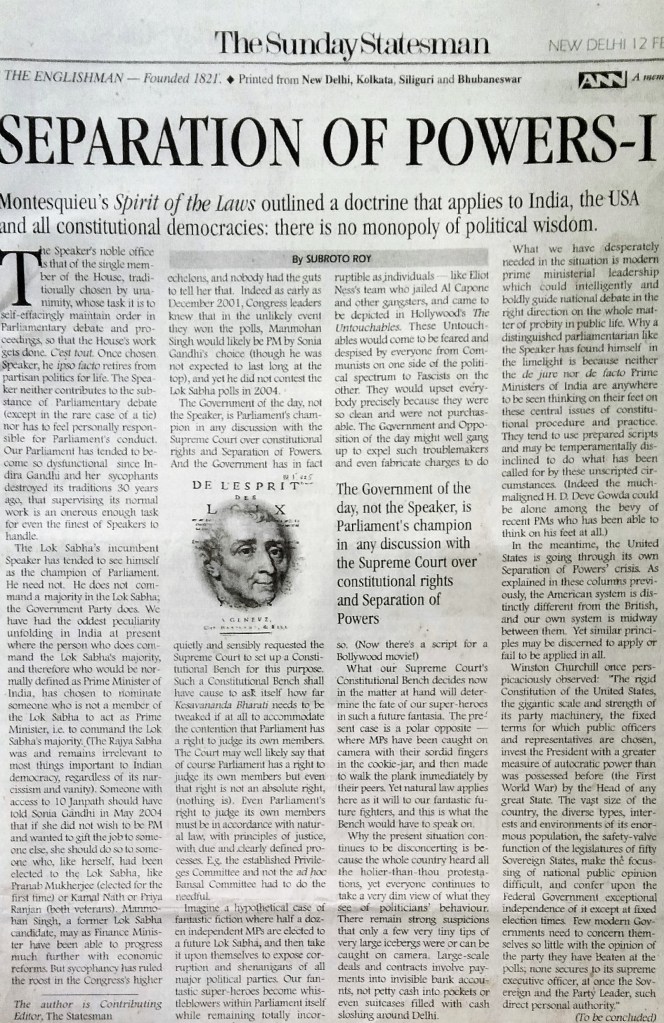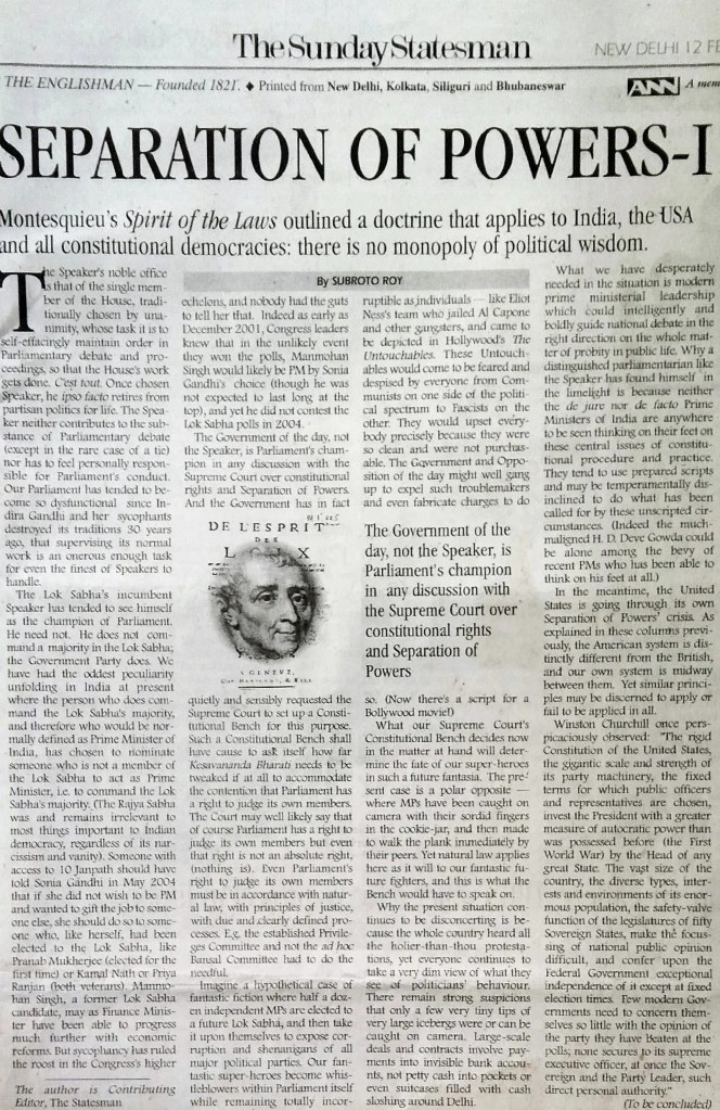 By SUBROTO ROY First published in The Sunday Statesman, The Statesman Editorial Page,