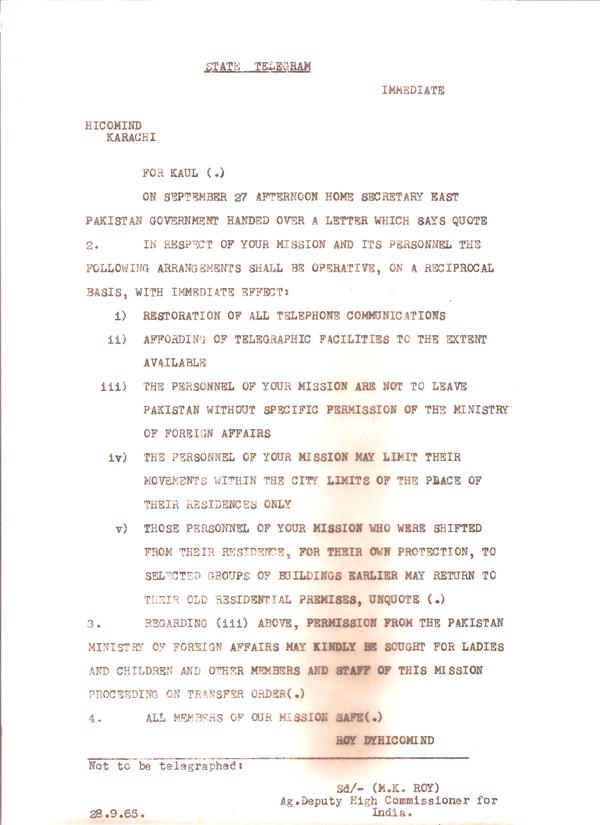India-Pakistan Diplomacy During the 1965 War: the MK Roy Files » 29sep1