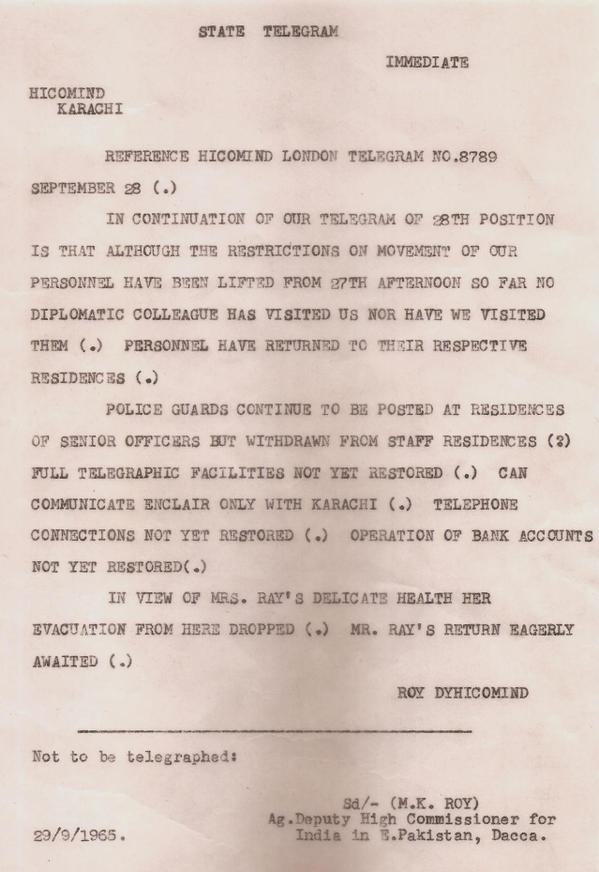 India-Pakistan Diplomacy During the 1965 War: the MK Roy Files » 29sep2