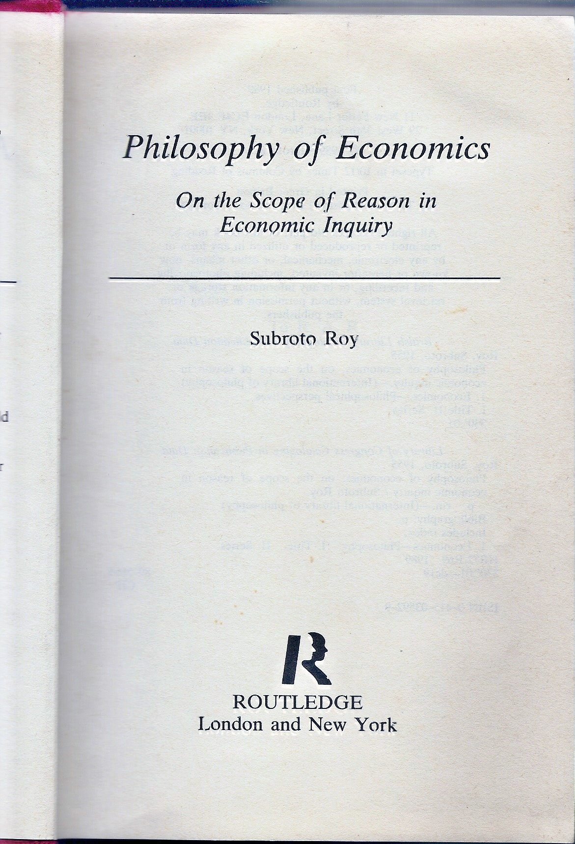 “In September 1989, after a struggle of numerous years, my Philosophy of Economics: On the Scope of Reason in Economic Inquiry was published in London and New York; the next month, I, from Honolulu, gifted a copy to Kenneth Arrow at Stanford.